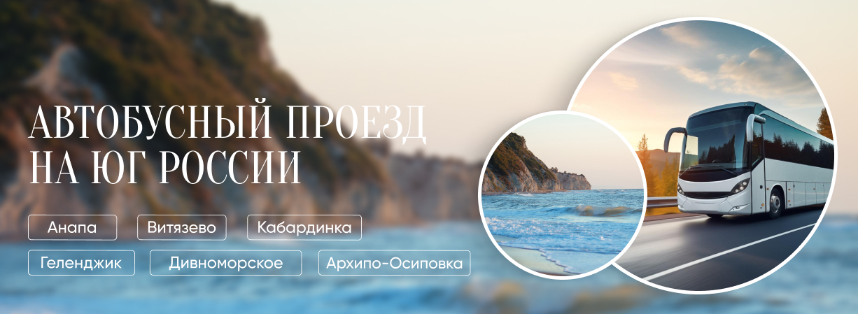 Автобусные/железнодорожные туры на Юг Росси: Анапа, Геленджик, Кабардинка, Дивноморское, Архипо-Осиповка, Туапсе, Сочи.