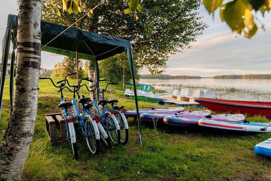 К услугам отдыхающих: караоке и танцевальная площадка, бесплатная автостоянка, прокат спортивного инвентаря и мангалов, пикниковая площадка с настоящим саамским чумом, мини-зоопарк, футбольное поле, баскетбольная и волейбольная площадки, оборудованная площадка для верхнего и нижнего верёвочного курсов, стенка высотой 6 метров для дюльферных спусков и подъёмов. Работает собственное экскурсионное бюро. Предоставляются лодки для катания и рыбалки, а также велосипеды.